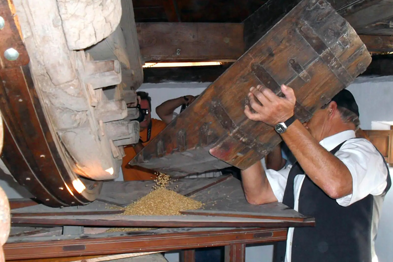 Podrá ver en funcionamiento un molino de viento original del siglo XVI. El mecanismo de madera cobra vida sobre la Sierra de los Molinos. Una imagen que se queda grabada para siempre.
